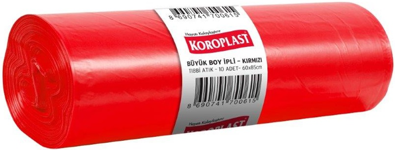 KOROPLAST ÇÖP TORBASI BÜYÜK 65×80 TIBBİ ATIK KIRMIZI 500 GR 10 LU 100 MİC. ST01500292