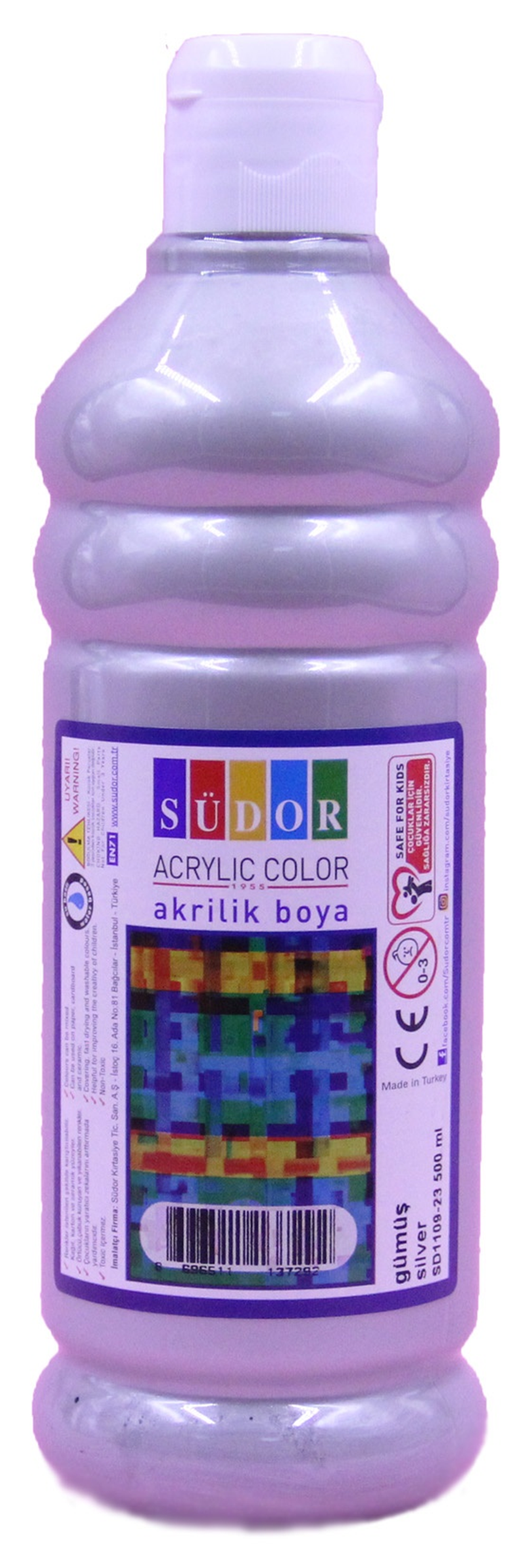 SÜDOR AKRİLİK BOYA 500 ML GÜMÜŞ SD1109-23, sanatsal projelerinizi bir üst seviyeye taşımak için tasarlandı. Yüksek kaliteli akrilik içeriği sayesinde, canlı ve kalıcı renkler elde etmenizi sağlar. Hem amatör hem de profesyonel sanatçılar için ideal bir tercih olan bu boya, çeşitli yüzeylerde mükemmel uyum gösterir.