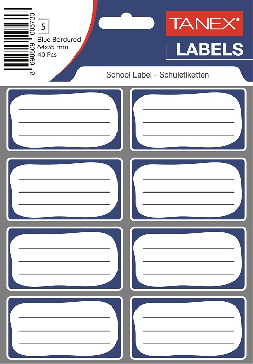 TANEX OKUL ETİKETİ BORDÜRLÜ ÇİFT SIRA 5 Lİ MAVİ BRD-7001